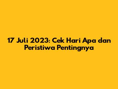 17 Juli 2023: Cek Hari Apa Dan Peristiwa Pentingnya