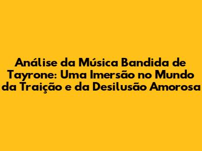 Em suma, "Bandida" de Tayrone é muito mais do que uma simples música sertaneja; é uma narrativa pungente sobre a dor da traição, a desilusão amorosa e a luta para superar a perda. Através de sua letra direta, melodia envolvente e interpretação emocionante, a música consegue tocar em feridas emocionais e oferecer um espaço de identificação e catarse.