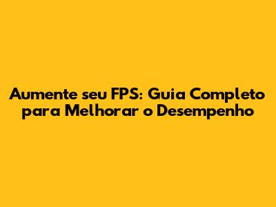 O Que Fazer Para Aumentar o FPS: Dicas Práticas e Eficazes