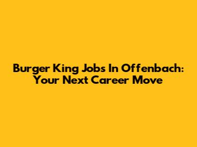 Burger King Jobs In Offenbach: Your Next Career Move