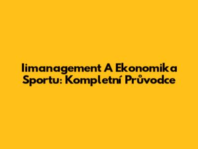 Iimanagement A Ekonomika Sportu: Kompletní Průvodce
