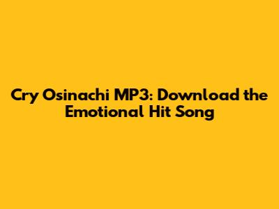 Hey guys! Are you looking to get your hands on the incredibly moving track "Cry" by Osinachi? You've come to the right place! In this article, we're going to dive deep into how you can download the Cry Osinachi MP3 version of this powerful song, making sure you have it ready to play whenever that emotional wave hits you. We'll cover the best ways to find legitimate downloads, what to look out for, and why this song continues to resonate with so many people. So, buckle up, and let's get this done!