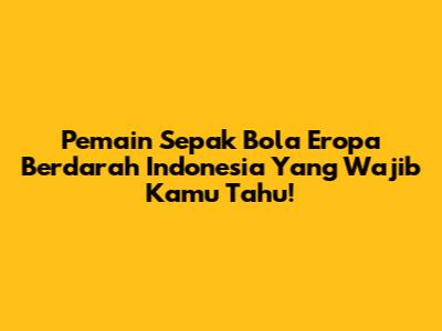 Pemain Sepak Bola Eropa Berdarah Indonesia Yang Wajib Kamu Tahu!