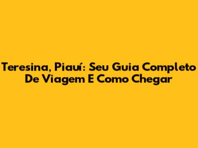 Teresina, Piauí: Seu Guia Completo De Viagem E Como Chegar