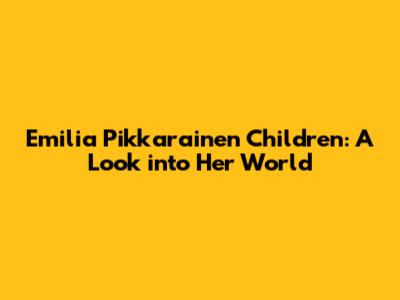 Hey everyone! Today, we're diving into the fascinating world of Emilia Pikkarainen and taking a closer look at her family life, specifically focusing on the most precious aspect: her children. As a former competitive swimmer and a prominent figure in Finland, Emilia's life has always been under the spotlight. But, what about her personal life and the little ones who bring so much joy to her world? Let's get into it, guys!