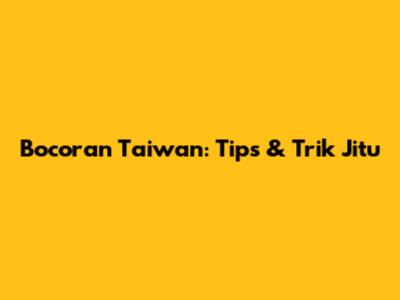 Bocoran Taiwan: Tips & Trik Jitu