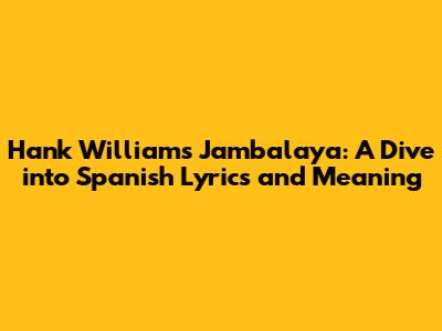 Hey guys, ever heard that super catchy tune "Jambalaya (On the Bayou)" by the legendary Hank Williams? It's one of those songs that just makes you want to tap your feet and maybe even do a little dance, right? Well, today, we're going to dive deep into the Spanish lyrics of this iconic song and unravel its meaning. It’s a real treat, and understanding the Spanish version adds a whole new layer of appreciation to this classic. We'll explore how the song translates, what nuances are captured, and why it continues to resonate with people across different cultures and languages. Get ready to get your groove on with a little bit of Spanish flair!