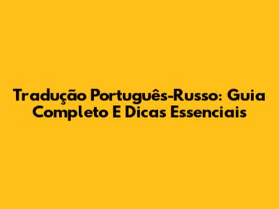 Tradução Português-Russo: Guia Completo E Dicas Essenciais