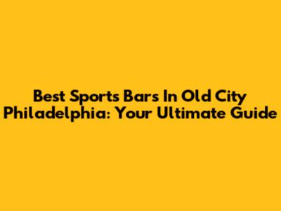 Best Sports Bars In Old City Philadelphia: Your Ultimate Guide