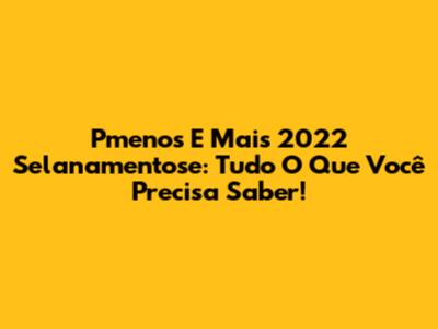 Pmenos E Mais 2022 Selanamentose: Tudo O Que Você Precisa Saber!