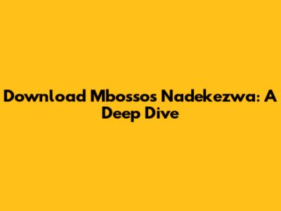 Download Mbosso's 'Nadekezwa': A Deep Dive