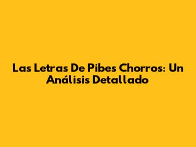 Las Letras De Pibes Chorros: Un Análisis Detallado