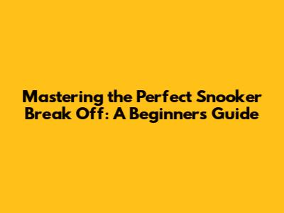 Understanding the Importance of the Snooker Break Off