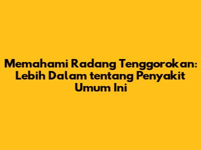 Radang tenggorokan, atau faringitis, adalah peradangan pada tenggorokan yang disebabkan oleh berbagai faktor. Penyakit ini sangat umum, dan hampir setiap orang pernah mengalaminya setidaknya sekali dalam hidup mereka. Radang tenggorokan dapat disebabkan oleh infeksi virus, bakteri, atau bahkan iritasi lingkungan. Gejala yang paling umum meliputi sakit tenggorokan, kesulitan menelan, dan terkadang demam. Mari kita telusuri lebih dalam tentang apa yang menyebabkan radang tenggorokan, bagaimana cara mengidentifikasinya, dan yang paling penting, bagaimana cara mengatasinya.