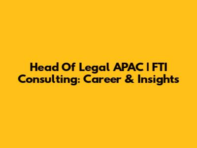 Head Of Legal APAC | FTI Consulting: Career & Insights