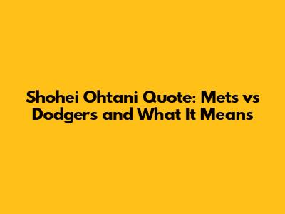 Ohtani Quote: Mets Vs Dodgers & What It Means