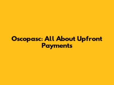 Oscopasc: All About Upfront Payments