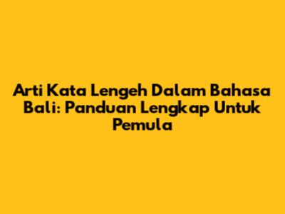 Arti Kata Lengeh Dalam Bahasa Bali: Panduan Lengkap Untuk Pemula