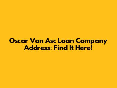 Oscar Van Asc Loan Company Address: Find It Here!
