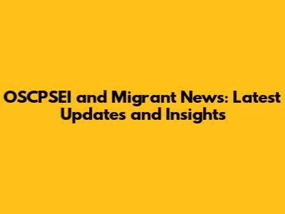 OSCPSEI And Migrant News: Latest Updates And Insights