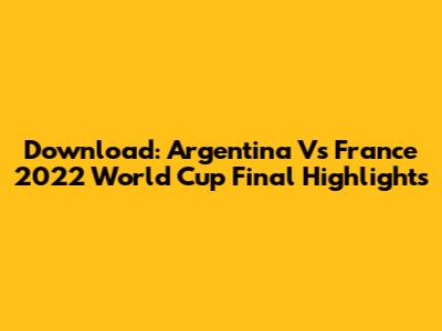 Download: Argentina Vs France 2022 World Cup Final Highlights
