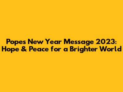 Pope's New Year Message 2023: Hope & Peace