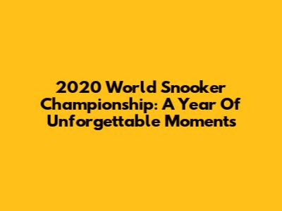 2020 World Snooker Championship: A Year Of Unforgettable Moments