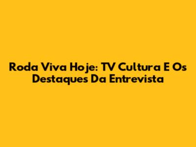 Roda Viva Hoje: TV Cultura E Os Destaques Da Entrevista
