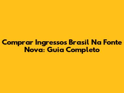 Comprar Ingressos Brasil Na Fonte Nova: Guia Completo