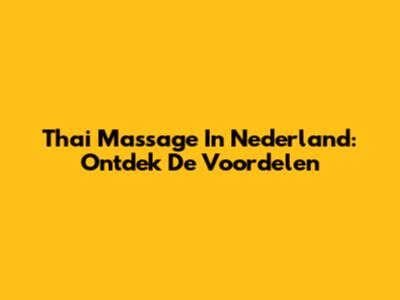 Thai Massage In Nederland: Ontdek De Voordelen