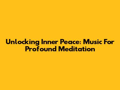 Unlocking Inner Peace: Music For Profound Meditation