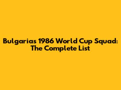 Bulgaria's 1986 World Cup Squad: The Complete List