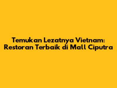 Restoran Vietnam di Mall Ciputra menawarkan pengalaman kuliner yang otentik dan menggugah selera. Bagi kalian para pecinta makanan Vietnam, Mall Ciputra Jakarta adalah surga tersembunyi. Di sini, kalian bisa menemukan berbagai restoran yang menyajikan hidangan khas Vietnam yang lezat dan menggugah selera. Dari pho yang hangat dan menyegarkan hingga banh mi yang renyah dan gurih, semuanya ada di sini. Mari kita telusuri beberapa restoran Vietnam terbaik di Mall Ciputra yang wajib kalian coba. Pastikan untuk membawa teman dan keluarga untuk menikmati pengalaman kuliner yang tak terlupakan!