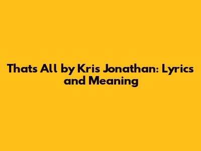 Hey guys! Let's dive into the heartfelt lyrics and explore the meaning behind "That's All" by Kris Jonathan. This song is a real gem, and understanding its message can give you a whole new appreciation for it. We will break it down bit by bit so that you can sing along and feel the emotions behind the song.