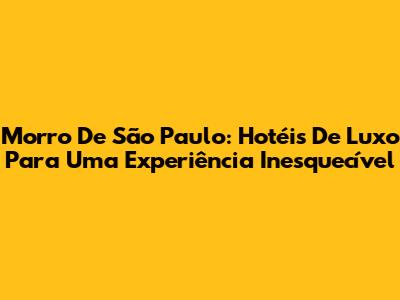 Morro De São Paulo: Hotéis De Luxo Para Uma Experiência Inesquecível