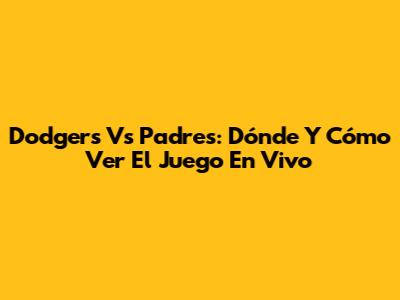 Dodgers Vs Padres: Dónde Y Cómo Ver El Juego En Vivo