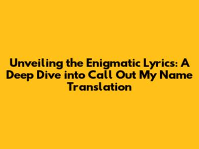 Unveiling The Meaning: Call Out My Name Song Translation