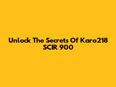 Unlock The Secrets Of Karo218 SCIR 900