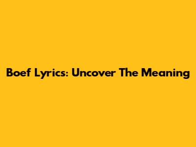 Boef Lyrics: Uncover The Meaning